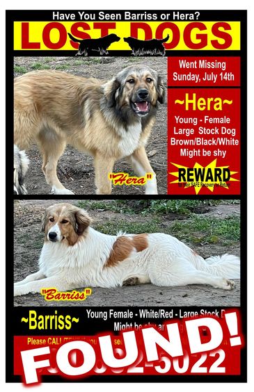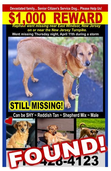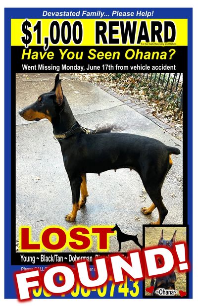 From Karin ~ After two decades doing this work, I have found that professionally produced eleven-by-seventeen inch, (11"X17"), laminated signs are the best for recovering missing pets.